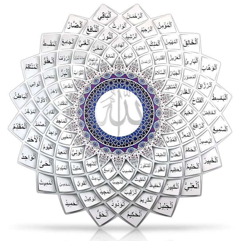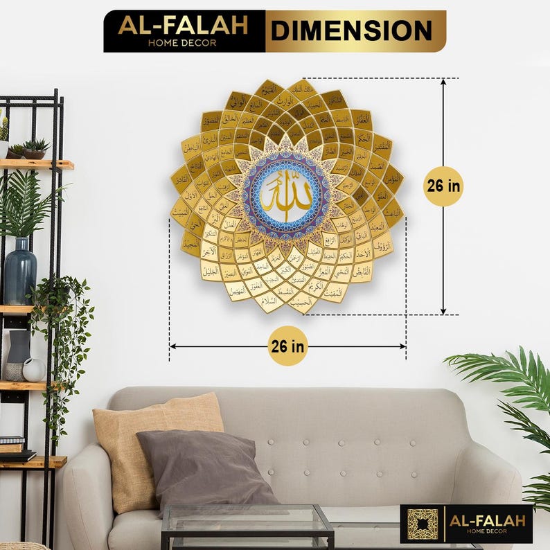 - Design: 99 Names of Allah (Asma Ul Husna) in Arabic calligraphy• Material: Premium quality metal with durable finish