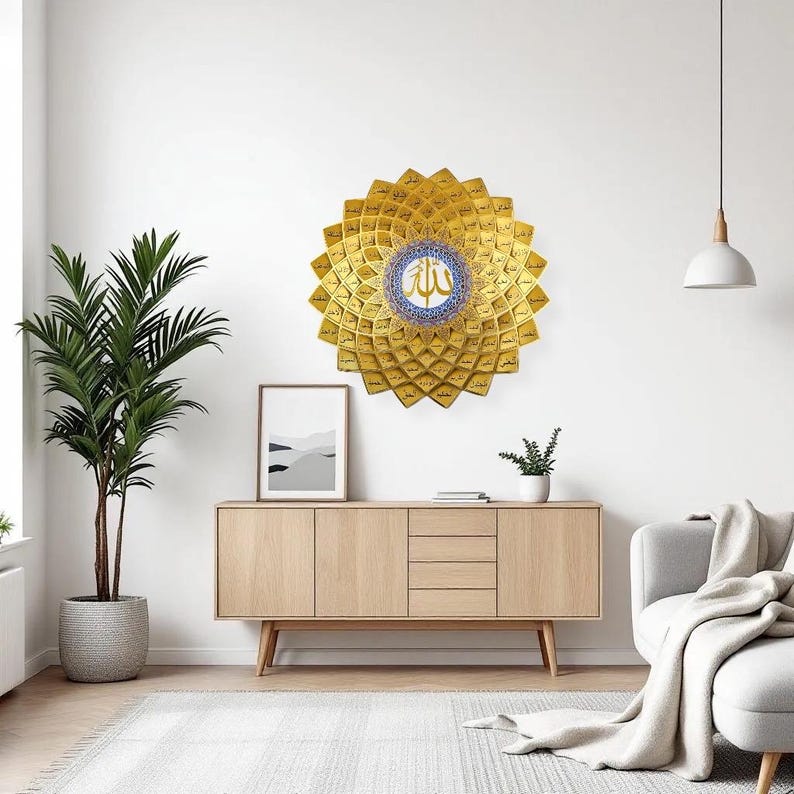 3D Islamic Wall Art Featuring the 99 Names of Allah (Asma Ul Husna), Modern Islamic Wall ArtTransform your home with this beautifully crafted metal Arabic calligraphy wall art featuring the 99 Names of Allah. Designed with an elegant floral pattern and a modern 3D effect, this piece is a timeless expression of faith and beauty.