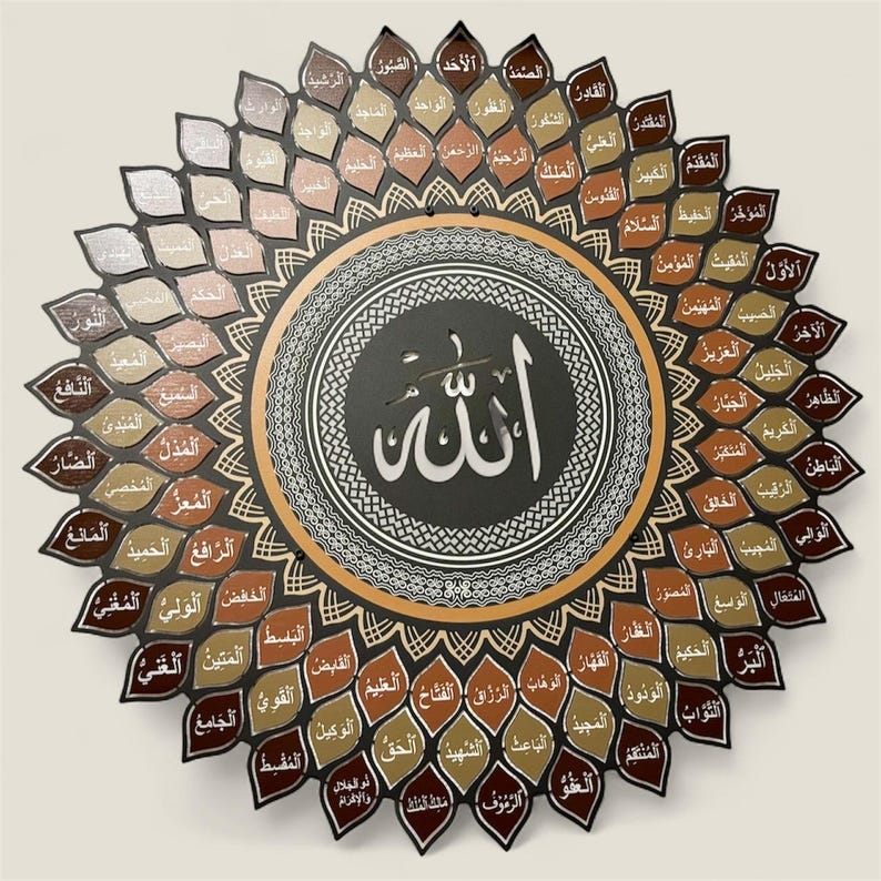 3D Metal Islamic Wall Art: 99 Names of Allah, Asma ul Husna